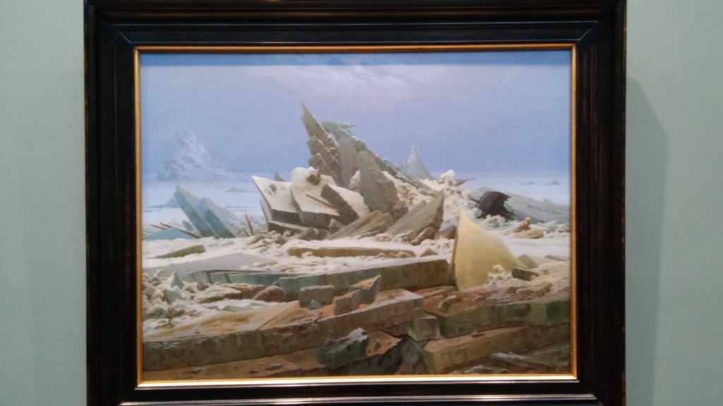 Caspar David Friedrich: The elegance and aesthetics of being overwhelmed by Mother Nature. Caspar David pacifies us against the fact/fate that only rocks, ice, fog and huge trees remain from old heroes, craft ships, philosophers and human architecture. Firmness and infinity of the Mother Nature has its best expression in perfectly cold whites.